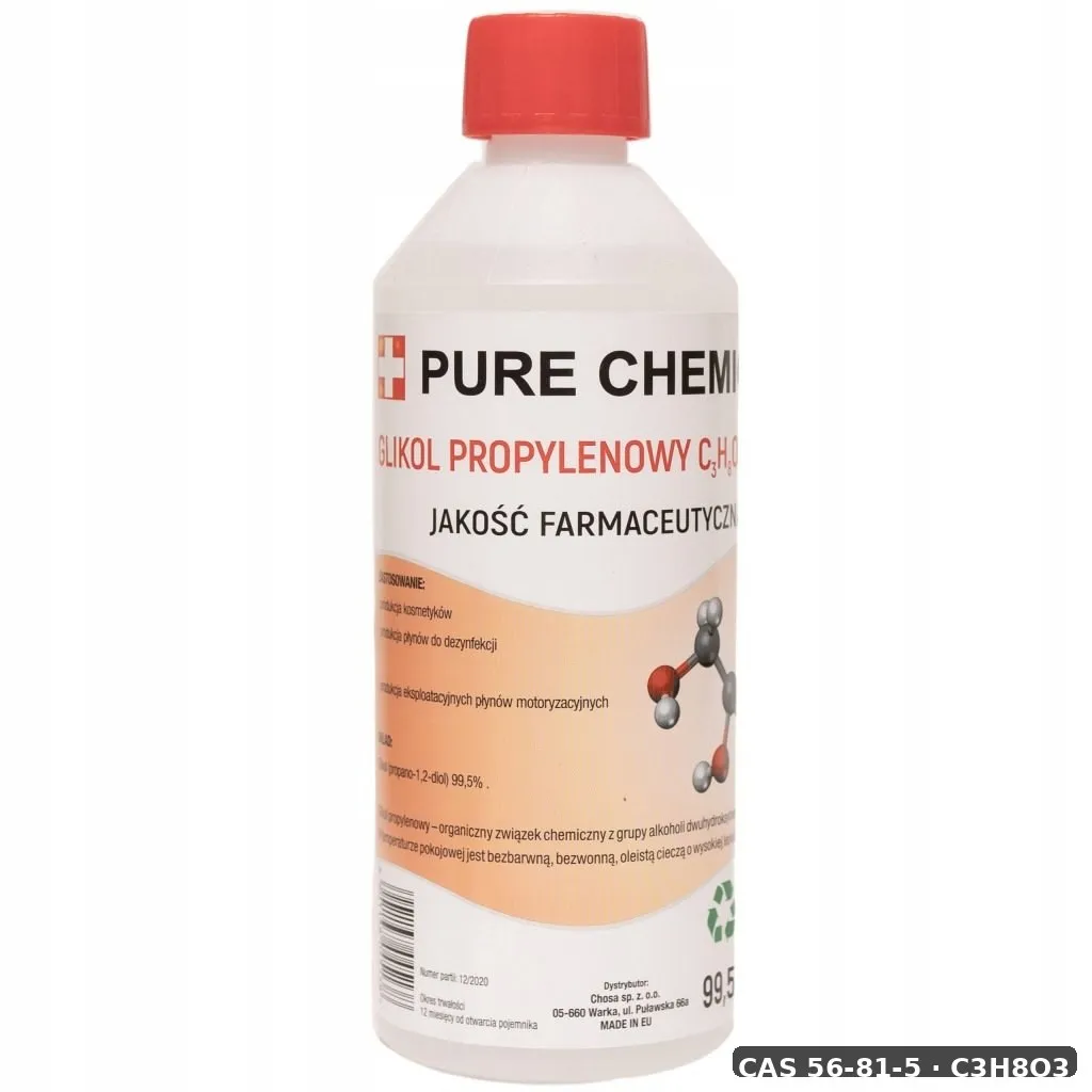 - Rozporządzenie CLP (WE) 1272/2008: Definiuje oznakowanie substancji chemicznych. Glikol propylenowy nie jest zaklasyfikowany jako toksyczny, ale może podrażniać skórę (H315).